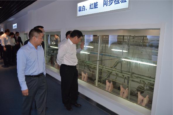 鮑市長一行首先通過參觀廊參觀了公司生產(chǎn)現(xiàn)場。鄭寶振副董事長對洛陽市鮑市長一行蒞臨洛陽正大指導(dǎo)表示歡迎,并對洛陽市政府一直以來對正大集團在洛陽項目的支持表示感謝。在公司三樓會議室,喬光斌總經(jīng)理匯報了洛陽正大生產(chǎn)經(jīng)營、項目建設(shè)規(guī)劃、食品安全管理、市場運作模式、公司發(fā)展愿景等相關(guān)工作情況;鄭寶振副董事長表示:洛陽正大食品有限公司是集團投資建設(shè)的***家生豬屠宰和豬肉深加工項目,集團對該項目高度重視,利用正大集團優(yōu)勢,圍繞洛陽正大100萬頭生豬屠宰項目,在洛陽地區(qū)打造從玉米種植、飼料加工、良種豬培育、商品豬養(yǎng)殖、屠宰分割、肉制品精深加工、冷鏈物流、連鎖專賣為一體的全產(chǎn)業(yè)鏈發(fā)展模式,確保產(chǎn)品的安全可追溯,下一步要高標(biāo)準(zhǔn)建設(shè)洛陽正大深加工項目,并將在洛陽周邊偃師、宜陽、伊川、孟津等區(qū)域拓展安全豬源養(yǎng)殖基地,洛陽正大食品有限公司向洛陽市民提供安全、健康、營養(yǎng)、美味的正大食品,希望市政府在洛陽正大深加工項目建設(shè)和生豬養(yǎng)殖建設(shè)方面給予支持和幫助。